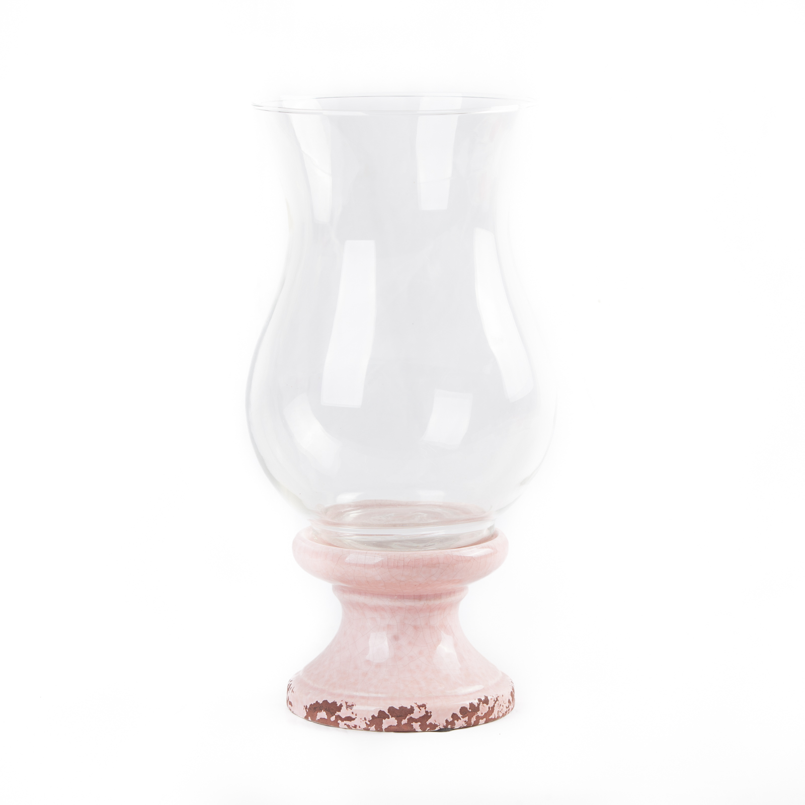 شمعدان سيراميك وردي مع زجاج 34 * 17 سم