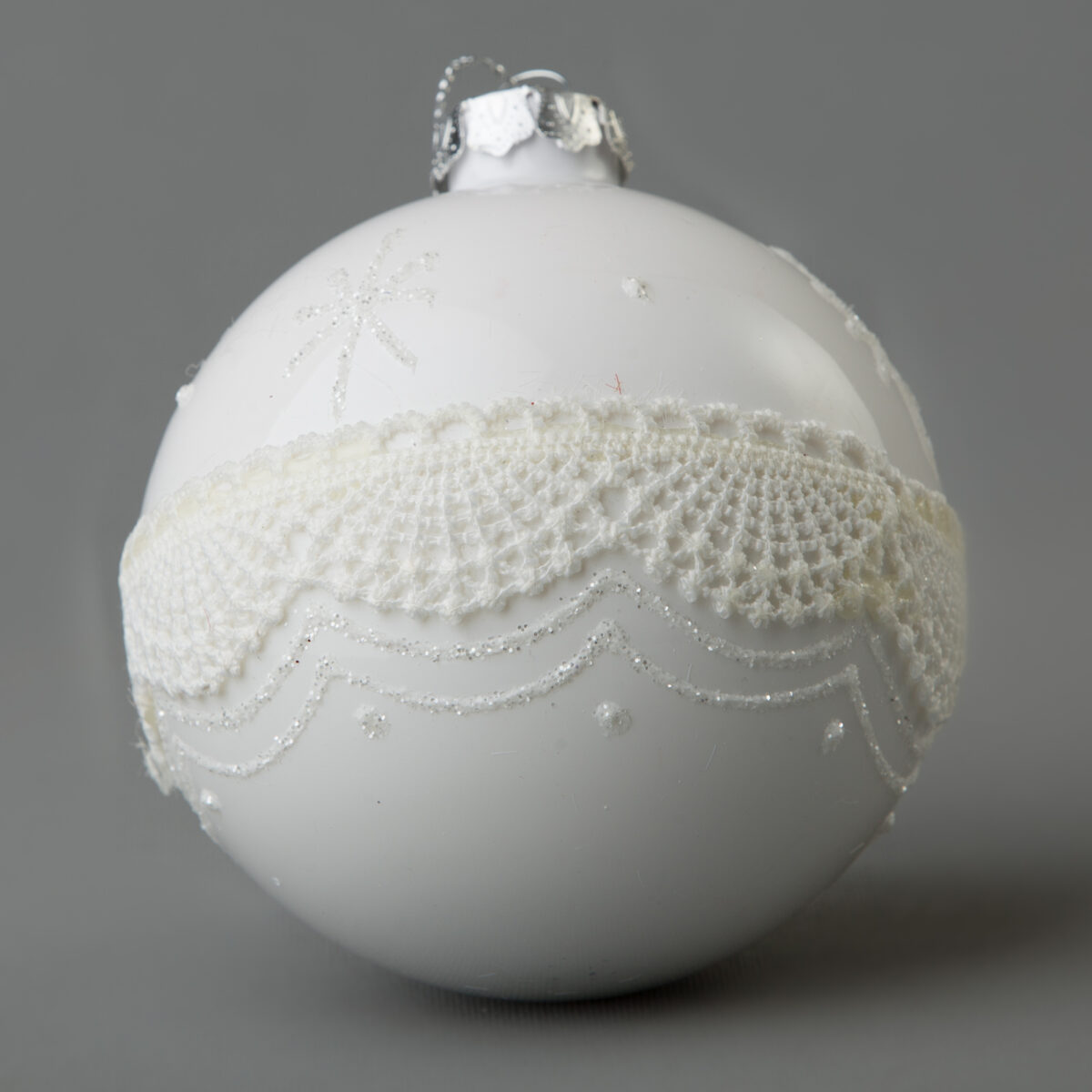 كرة زجاجية بيضاء نقية مع تصميم شبكي فريد من نوعه، زخرفة ساحرة لتزيين شجرة عيد الميلاد الخاصة بك. المصممة خصيصا.