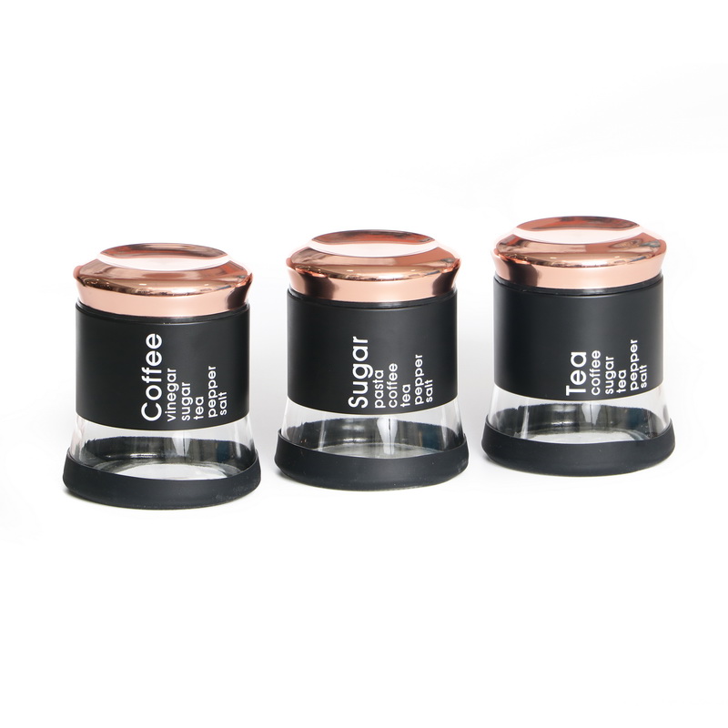 طقم تخزين 4 قطع قهوة لون أسود / ذهبي
