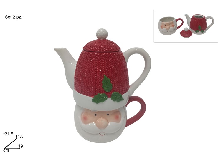 إبريق شاي سيراميك سانتا كلوز ومجموعة أكواب