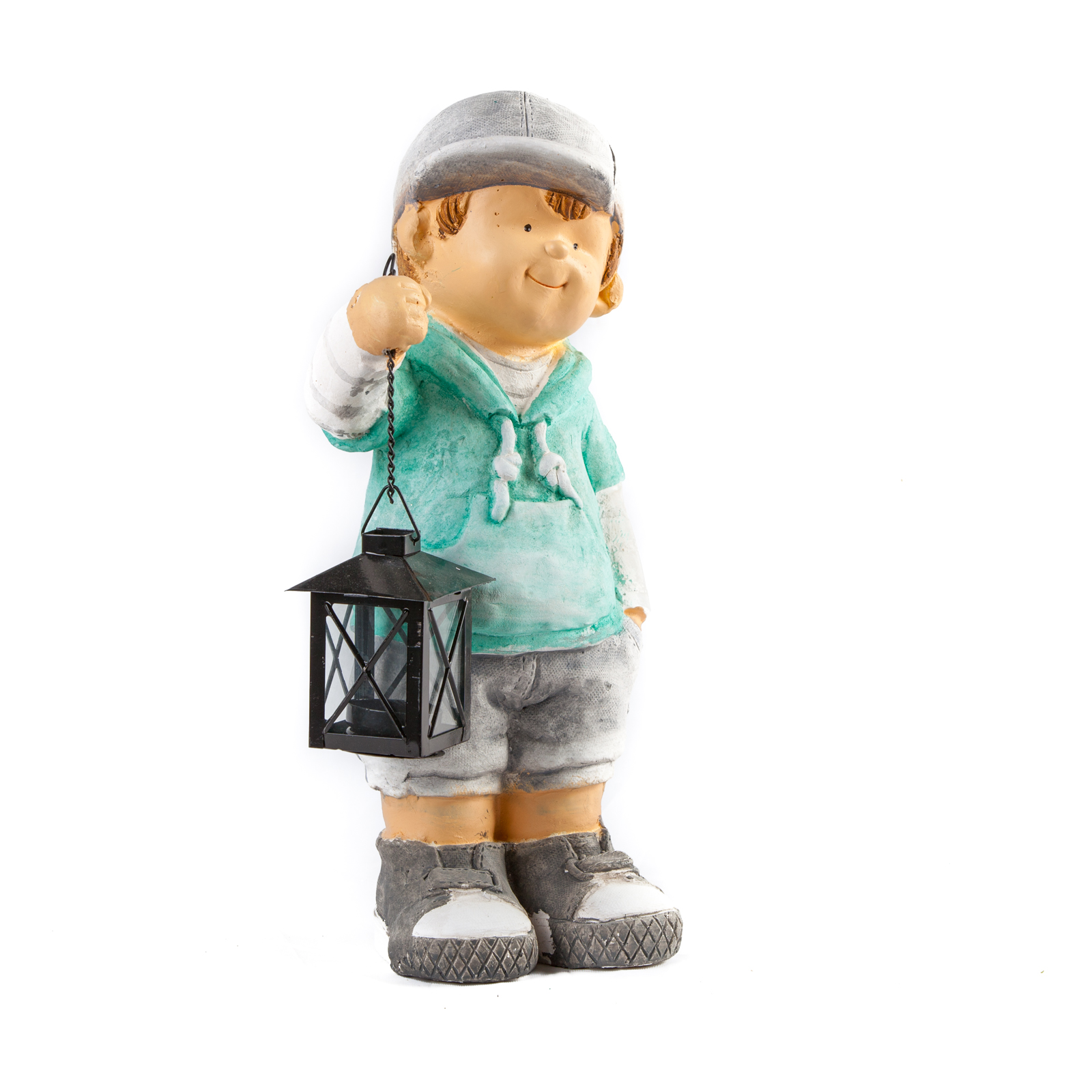 تمثال طفل مع فانوس من بوليرسين لون أخضر 35 * 13 * 14 سم