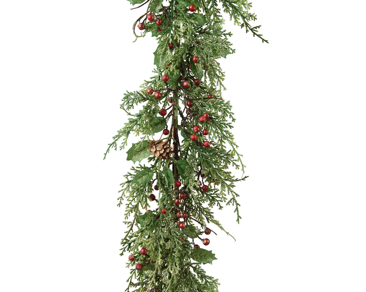 جيرلاند التوت اللامع مع التوت الأحمر وأقماع الصنوبر