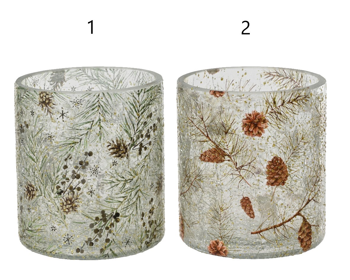 أضف جمال الغابة الثلجية الهادئة إلى منزلك مع هذه المجموعة الأنيقة من حاملات الشموع الزجاجية. تتميز كل قطعة برسوم توضيحية دقيقة لأقماع الصنوبر والأغصان دائمة الخضرة ولمسات ذهبية دقيقة، مما يخلق توهجًا طبيعيًا مريحًا عند إضاءته.