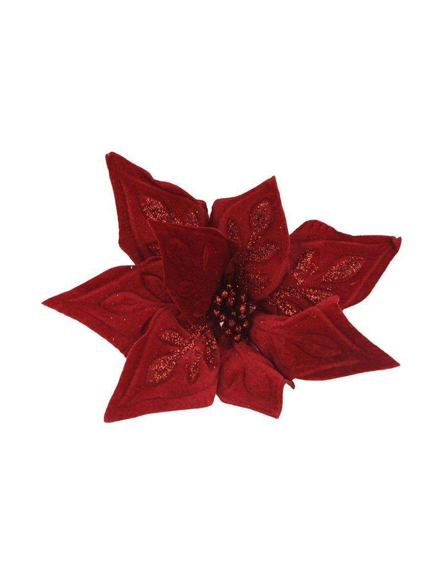 هذه الزهرة الحمراء الاصطناعية الواقعية هي ديكور كلاسيكي للعطلات، مثالية لإضافة لمسة احتفالية إلى أكاليل الزهور أو الأكاليل أو تغليف الهدايا.
