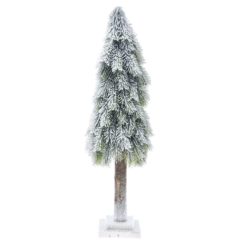 شجرة ثلجية على قاعدة خشبية. الشجرة المثالية لمن لا يريدون تخصيص مساحة كبيرة للشجرة ، أو بالعكس يريدون أن يكون لديهم شجرة في كل غرفة! يمكنك وضعه على الأرض أو على قطعة أثاث. إنها ذات جودة ممتازة مع جذع خشبي واقعي.