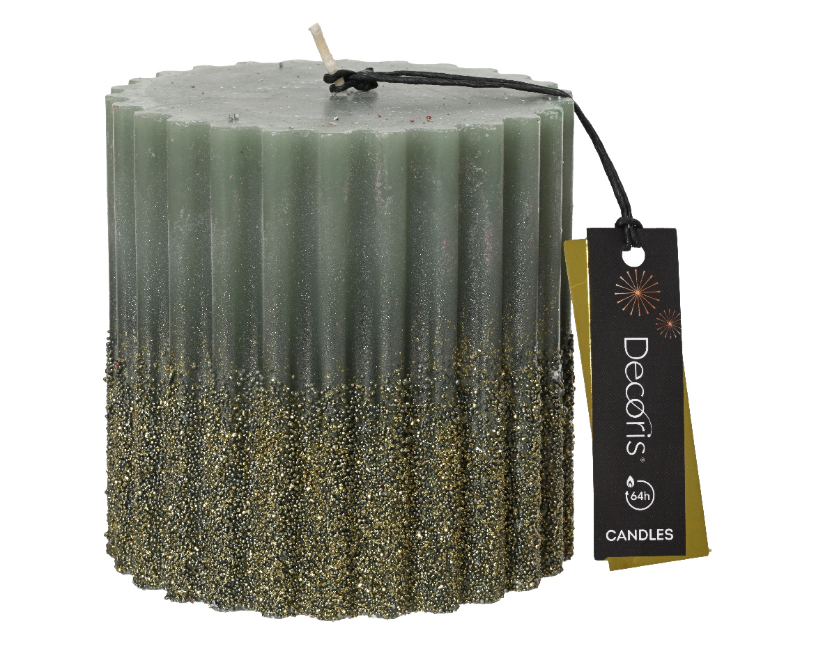 أضف لمسة أنيقة إلى إعداد طاولتك مع شمعة عمود الحبوب المزخرفة باللونين الكريمي والذهبي. تضفي تفاصيل المزامير المضلعة واللمعان الذهبي الصديق للبيئة في القاعدة إحساسًا بالمناسبة على منزلك.