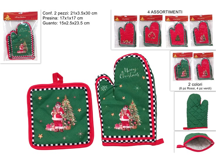 طقم مطبخ عيد الميلاد – قفاز الفرن وحامل القدر