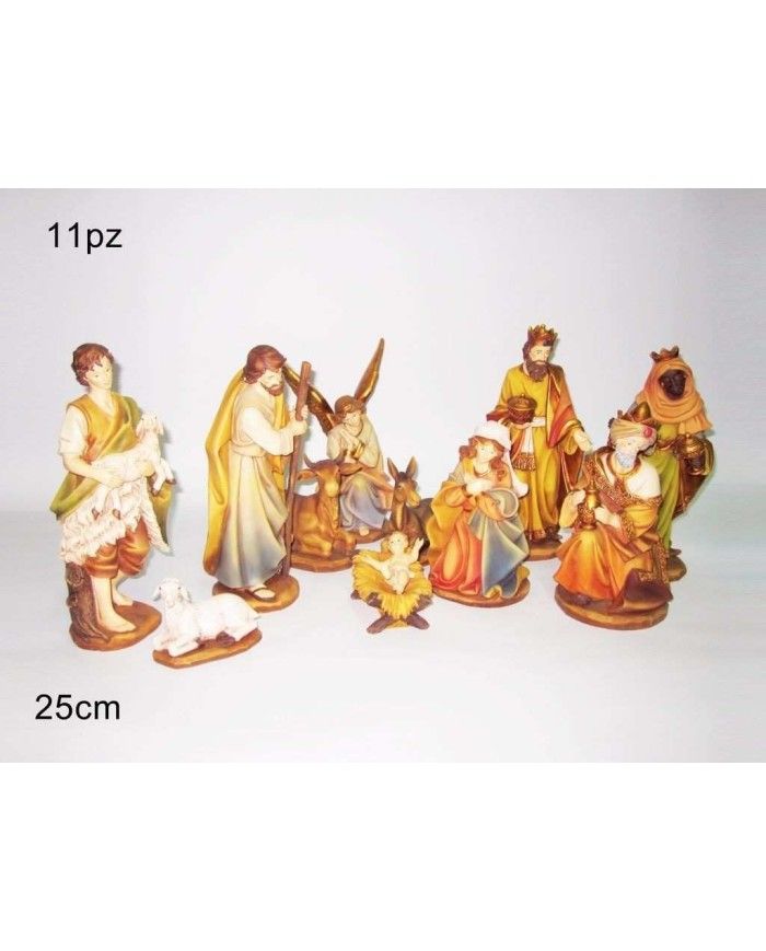 أضف روح عيد الميلاد الحقيقية إلى منزلك مع مجموعة المهد المكونة من 11 قطعة والمصممة بشكل جميل. يبلغ طول كل شخصية حوالي 25 سم وهي مفصلة بشكل معقد لتصوير مشهد الميلاد المقدس بأسلوب خالد وأنيق.