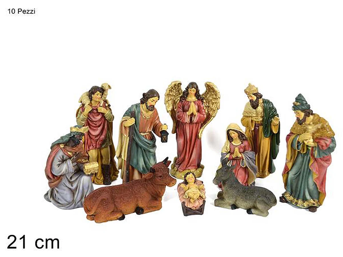 أضف روح عيد الميلاد الحقيقية إلى منزلك مع مجموعة المهد المكونة من 10 قطع والمصممة بشكل جميل. يبلغ ارتفاع كل شخصية حوالي 21 سم وتتميز بتفاصيل معقدة لتصوير مشهد الميلاد المقدس بأسلوب خالد وأنيق.