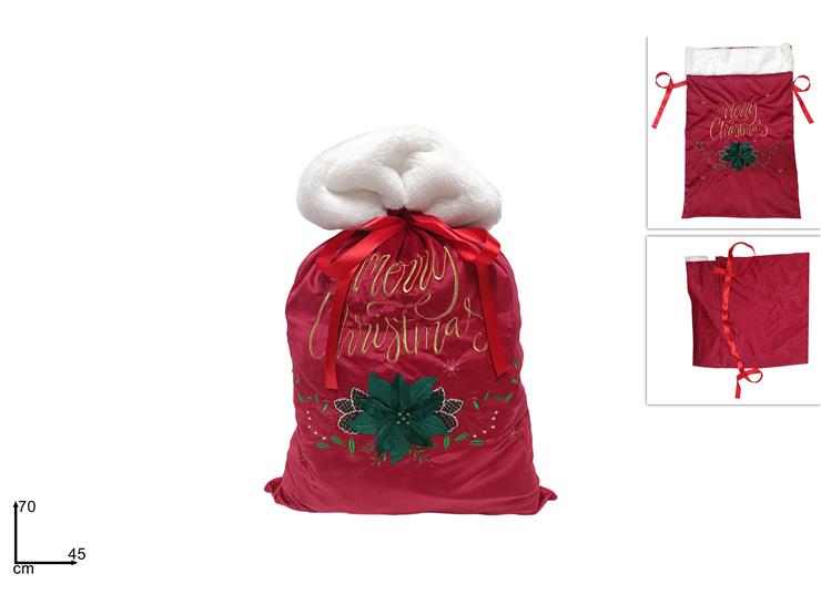 أضف لمسة سحرية إلى هدايا عطلتك مع كيس عيد الميلاد الأحمر الفاخر هذا! تتميز هذه الحقيبة بتطريز ذهبي أنيق مكتوب عليه “عيد ميلاد سعيد”، وتصميم بونسيتيا أخضر احتفالي، وفراء صناعي أبيض ناعم في الأعلى، وهي مزيج مثالي من الأسلوب والتقاليد. تم تشطيبه بأربطة من الساتان الأحمر لإغلاق آمن وذوق زخرفي.