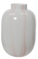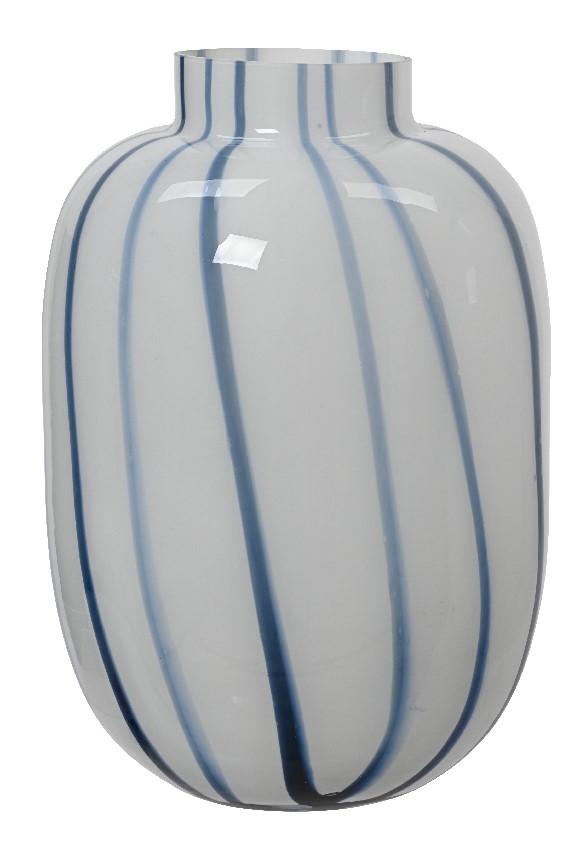 مزهرية زجاجية لون أبيض مع خطوط ملونة ثابتة