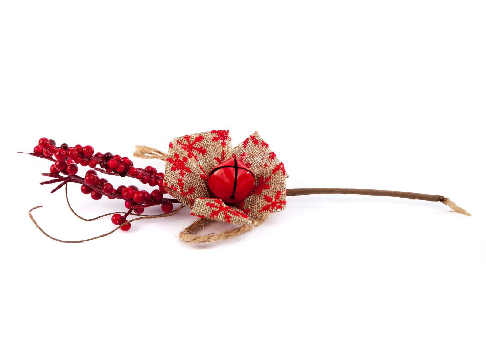 ورده ساق قصير مصنوعة من قماش ألخيش مع التوت البري وجرس جودة عالية لتزيين شجرة عيد الميلاد الخاصة بك .