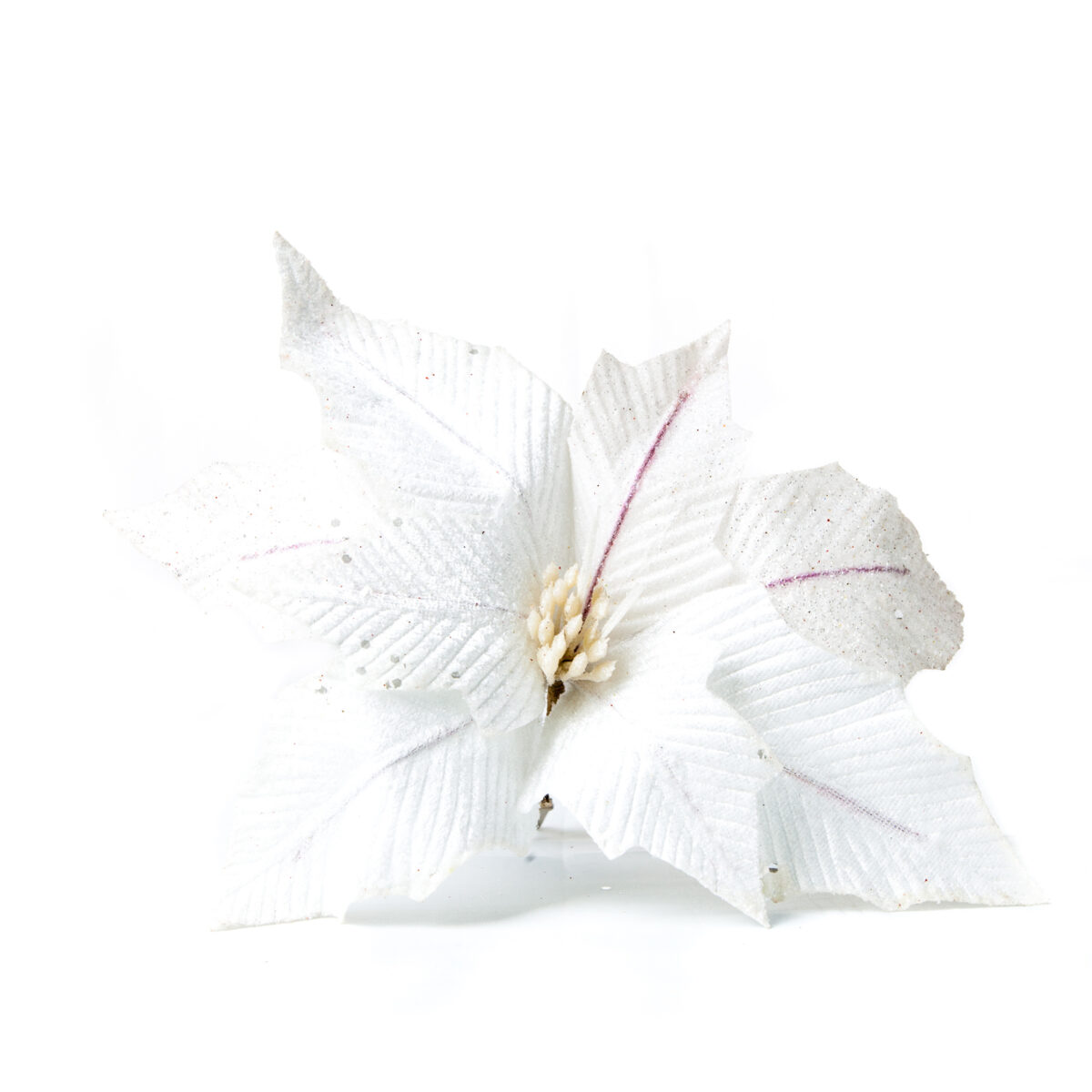 ورده بيضاء مصنوعة من القماش جودة عالية لتزيين شجرة عيد الميلاد الخاصة بك. ساق قصير.