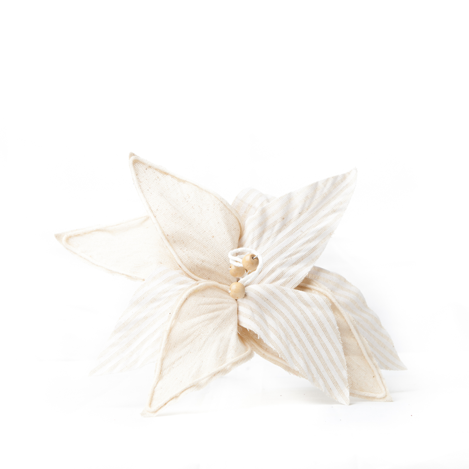 ورده بيج من قماش مزين بنقاط / خطوط وبزخرفه خلزونيه بيضاء جودة عالية لتزيين شجرة عيد الميلاد الخاصة بك. ساق قصير.