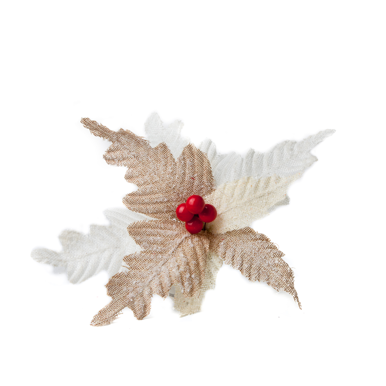 ورده مصنوعة من قماش الخيش ب 3 ألوان مختلفه مزينة بكرز أحمر جودة عالية لتزيين شجرة عيد الميلاد الخاصة بك ساق قصير.
