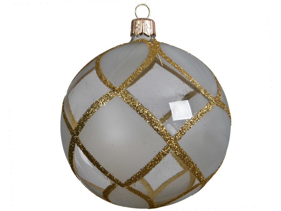 כדור זכוכית מבריק דוהה בז '10 ס"מ עם קווי נצנצים מזהב יפהפיים. קישוט טרי לקישוט עץ חג המולד שלך.