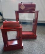 סט 2 פנסים מודרניים עם ידית נשיאה בסט של 2 עשוי ברזל.