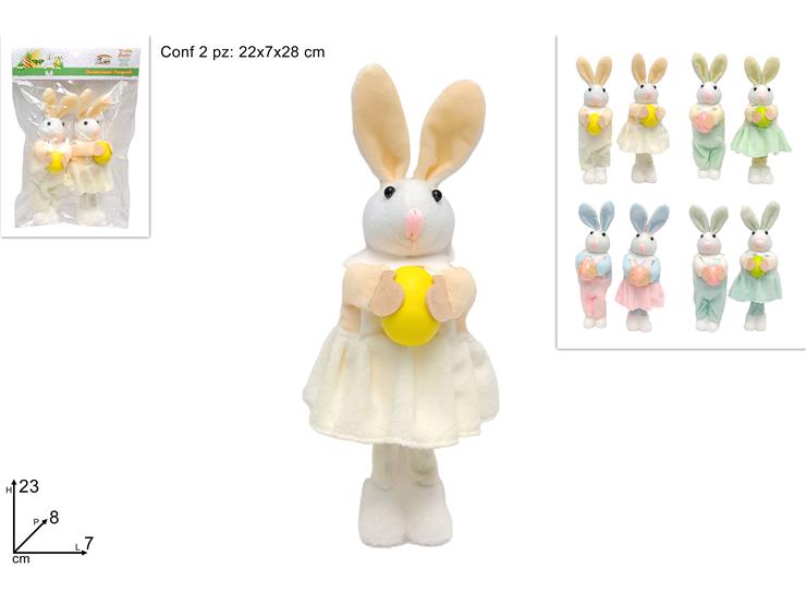 • גודל: כל ארנב בגובה 23 ס"מ, מה שמתאים לתצוגה על מדפים, שולחנות אוכל או פינות הבית.