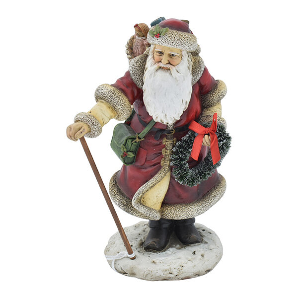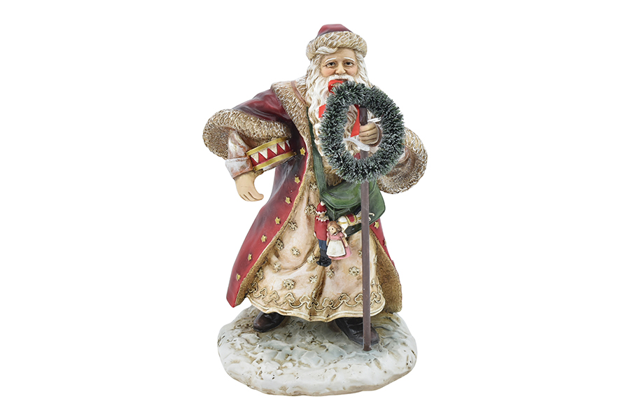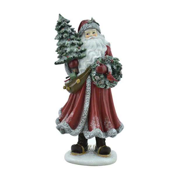 פסל דקורטיבי של סנטה קלאוס בגווני אדום ולבן, עשוי פולירזין. זה מביא את רוח חג המולד לכל בית. זה רעיון המתנה המושלם לקישוט חג המולד.