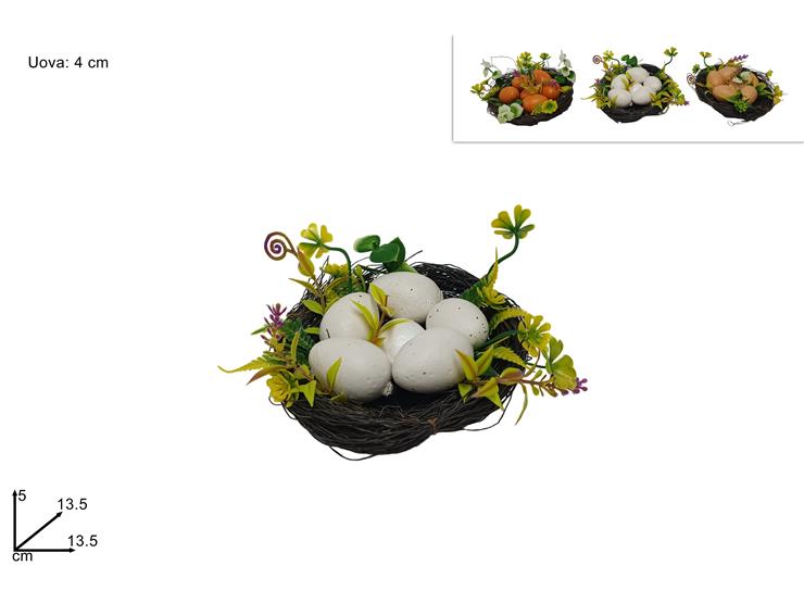קן קישוט לחג הפסחא עם 6 ביצים 4 ס"מ