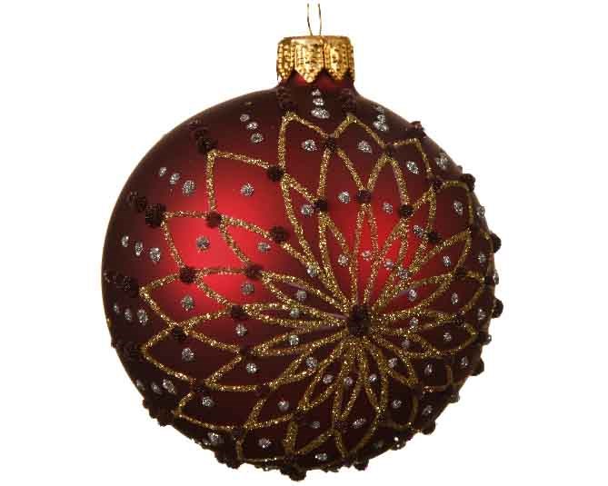 Bordo With Gold Glitter Glass Ball