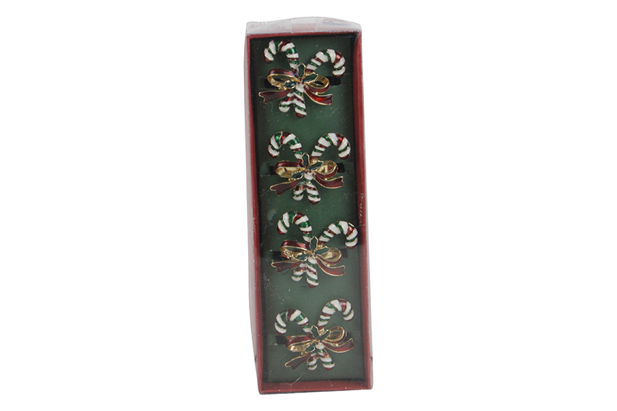 Bring a festive touch to your holiday table with this charming set of 4 candy cane napkin holders. Each piece features classic red, white, and green stripes tied with a shiny gold bow – the perfect blend of traditional cheer and elegant detail.