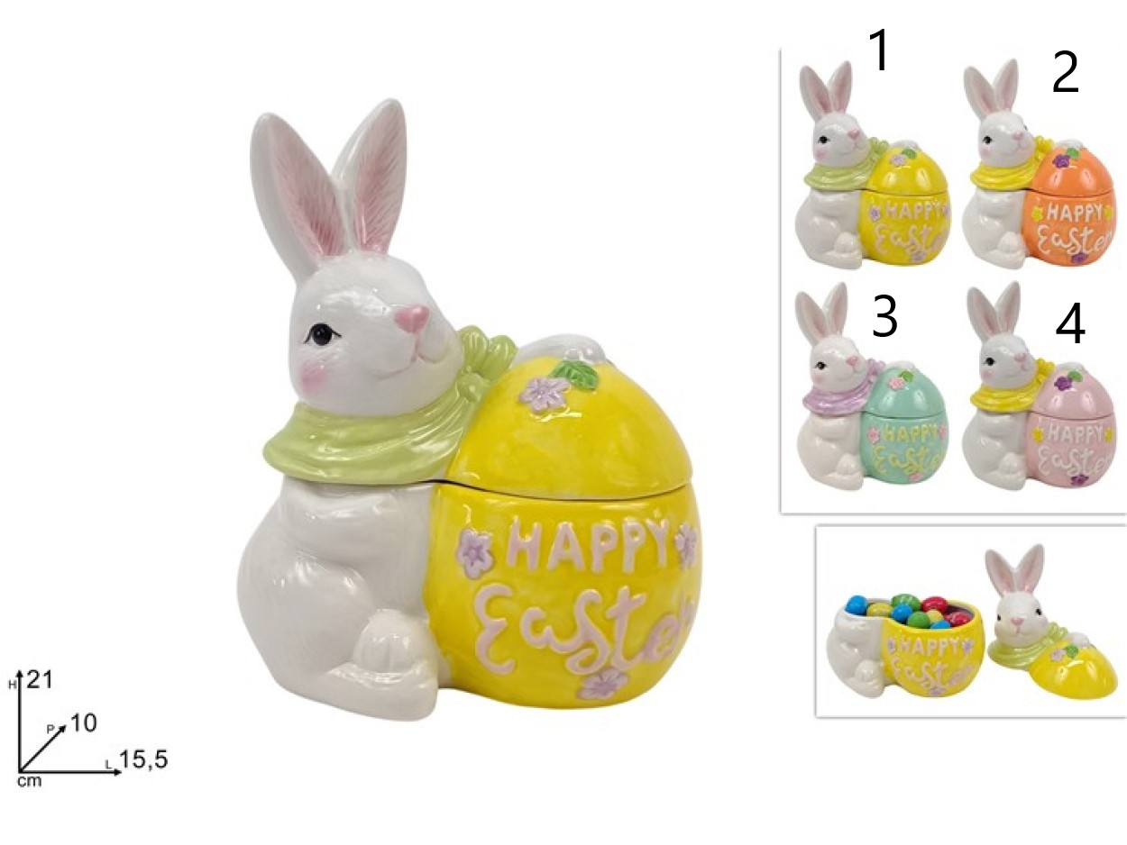 •Decorative ceramic bunny with egg-shaped jar