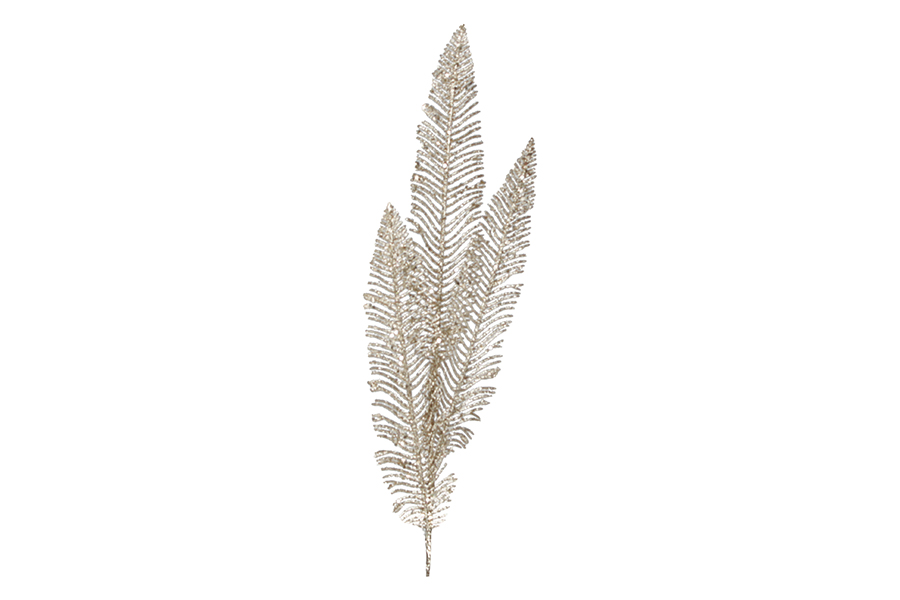 A long stem with two glittering leaves in a metallic champagne hue. Perfect for adding elegant shine to your tree, floral displays, or holiday arrangements.