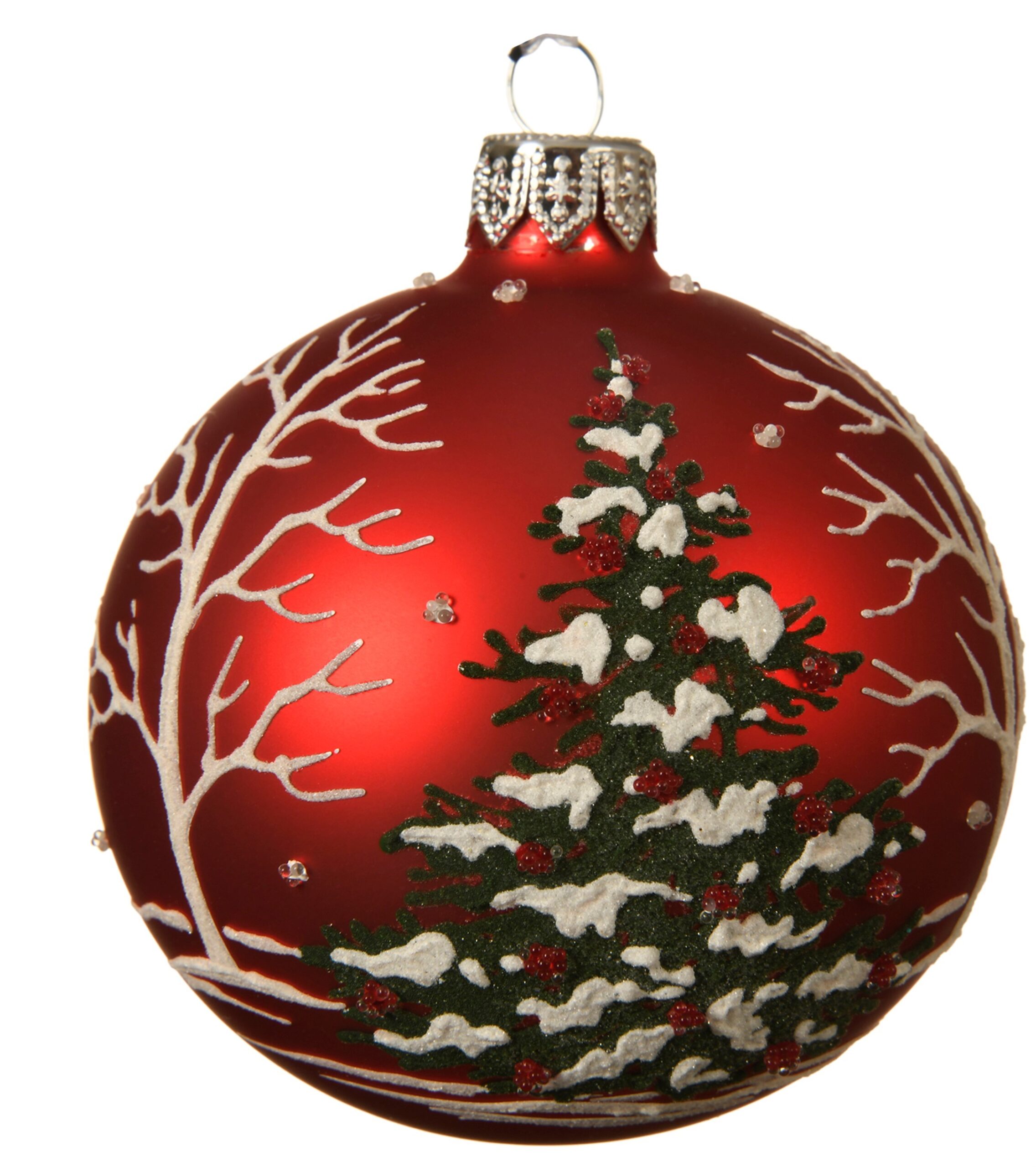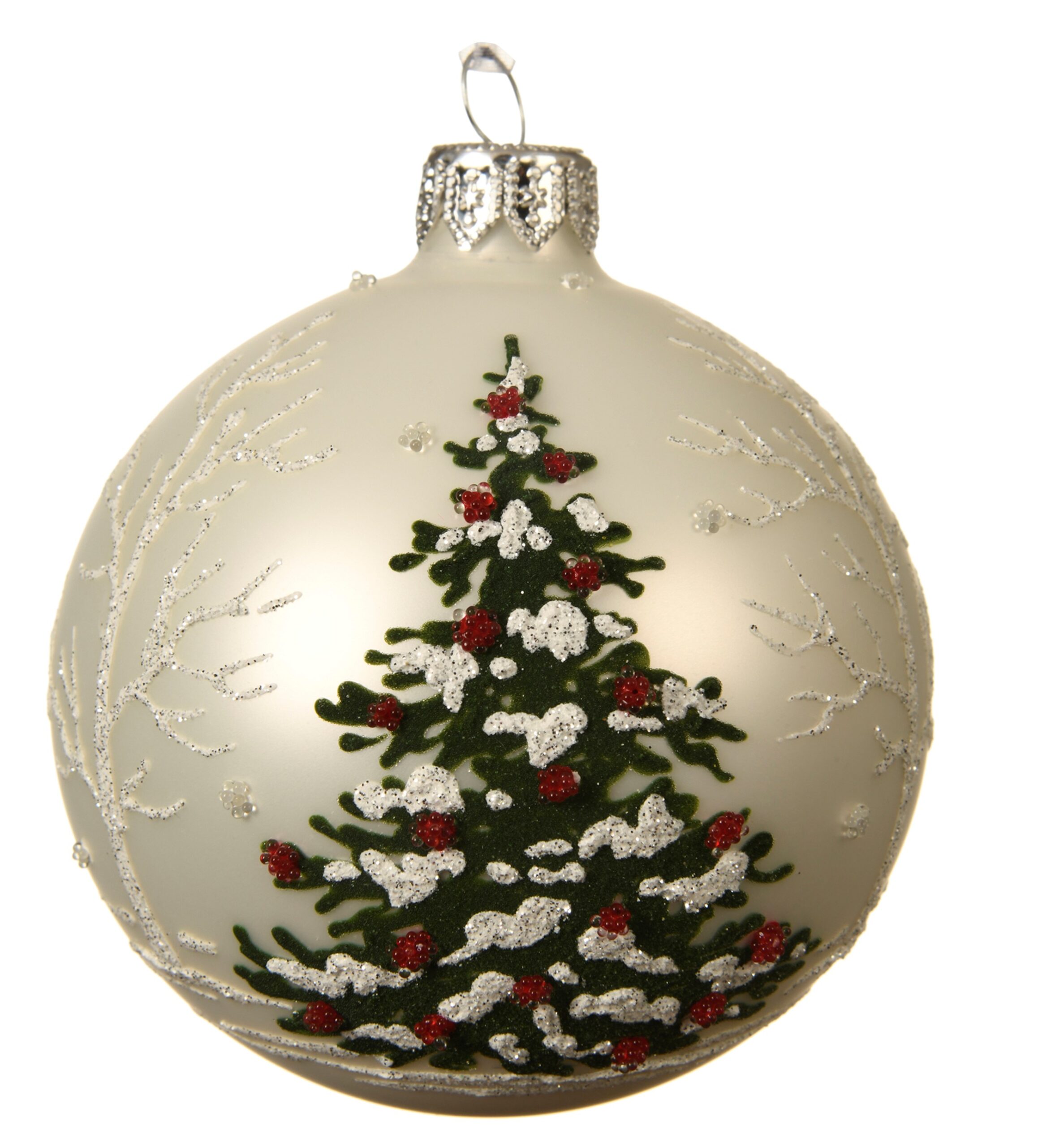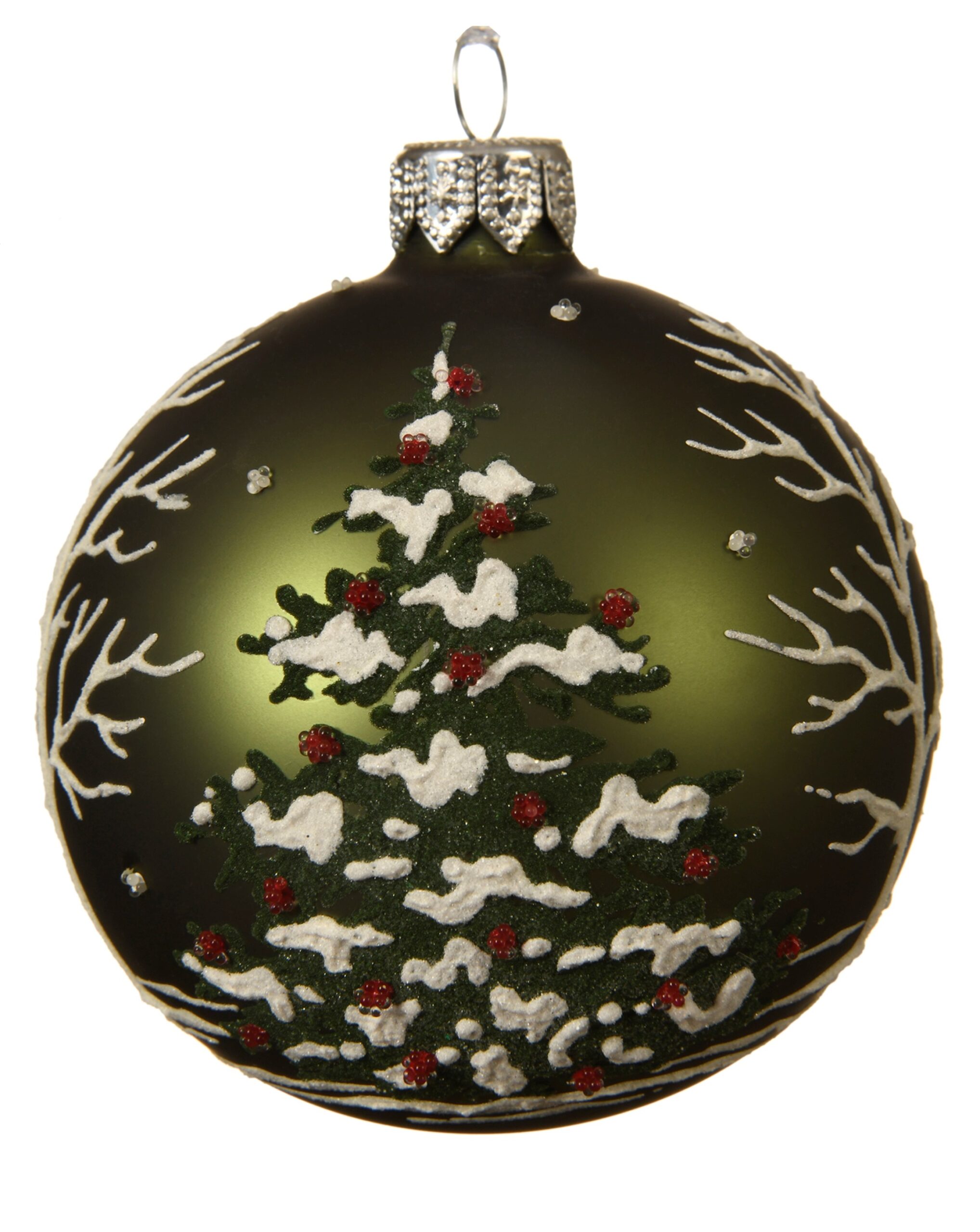 Cheerful Christmas spirit glass ball with Christmas trees high-end design. One of a kind Christmas ball for decorating your tree.