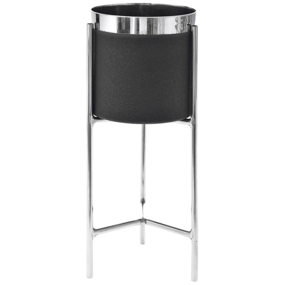 Black and silver metal planter 34cm