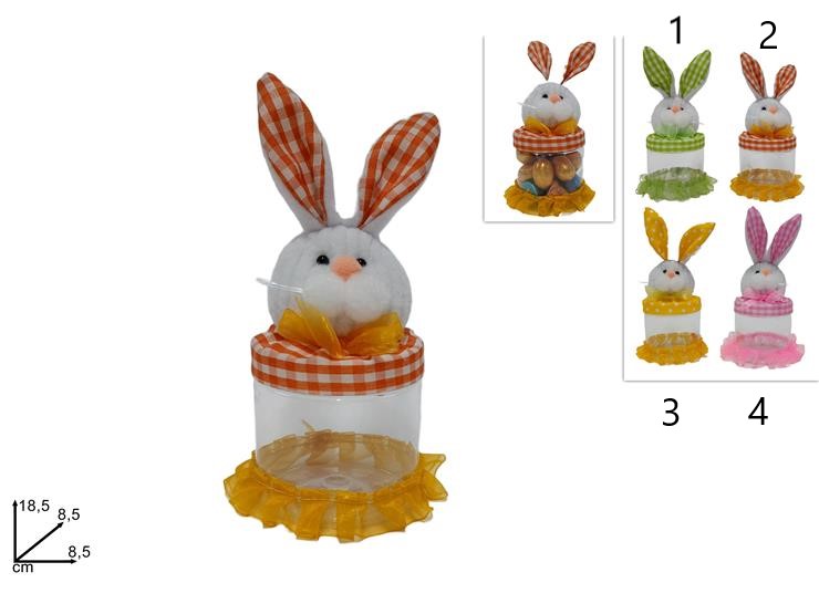 Plastic jar with rabbit in 4 colours