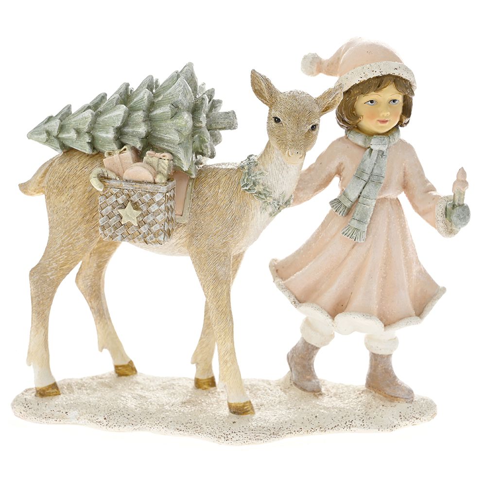 Christmas polyresin girl figure, ideal choice for festive decoration in all areas, creating the most beautiful Christmas atmosphere.