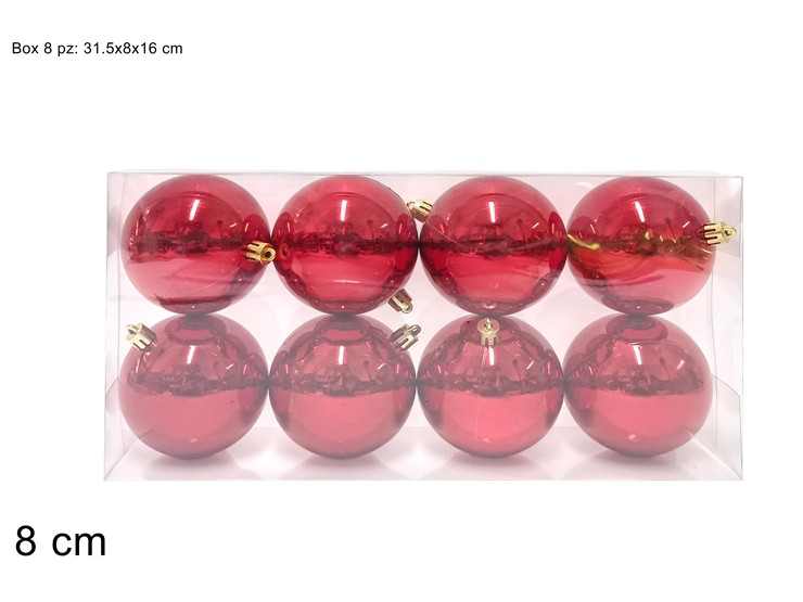 Red plastic Christmas balls. High quality and decorative ornament for your Christmas tree.
